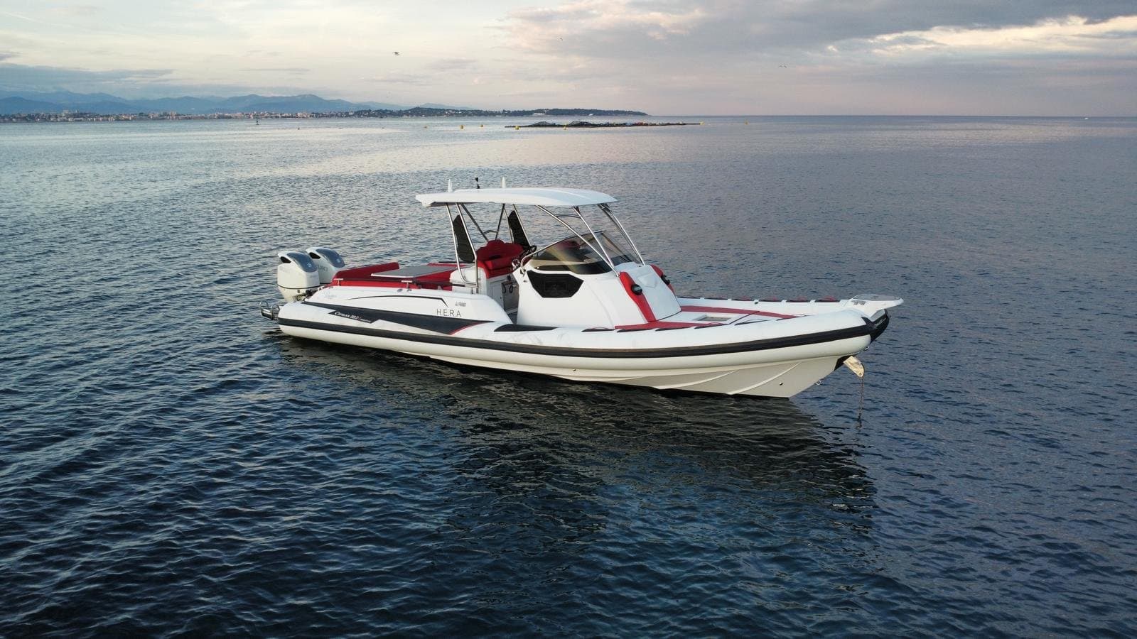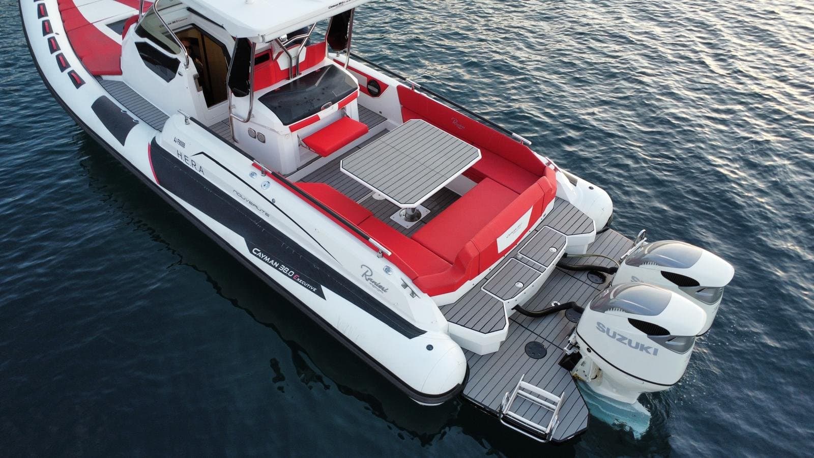 The Hera (Ranieri Cayman 38) is available for rent at Port de Sainte-Maxime, in the heart of the Gulf of Saint-Tropez. Half-day or full-day. Delivery to another port available with surcharge.