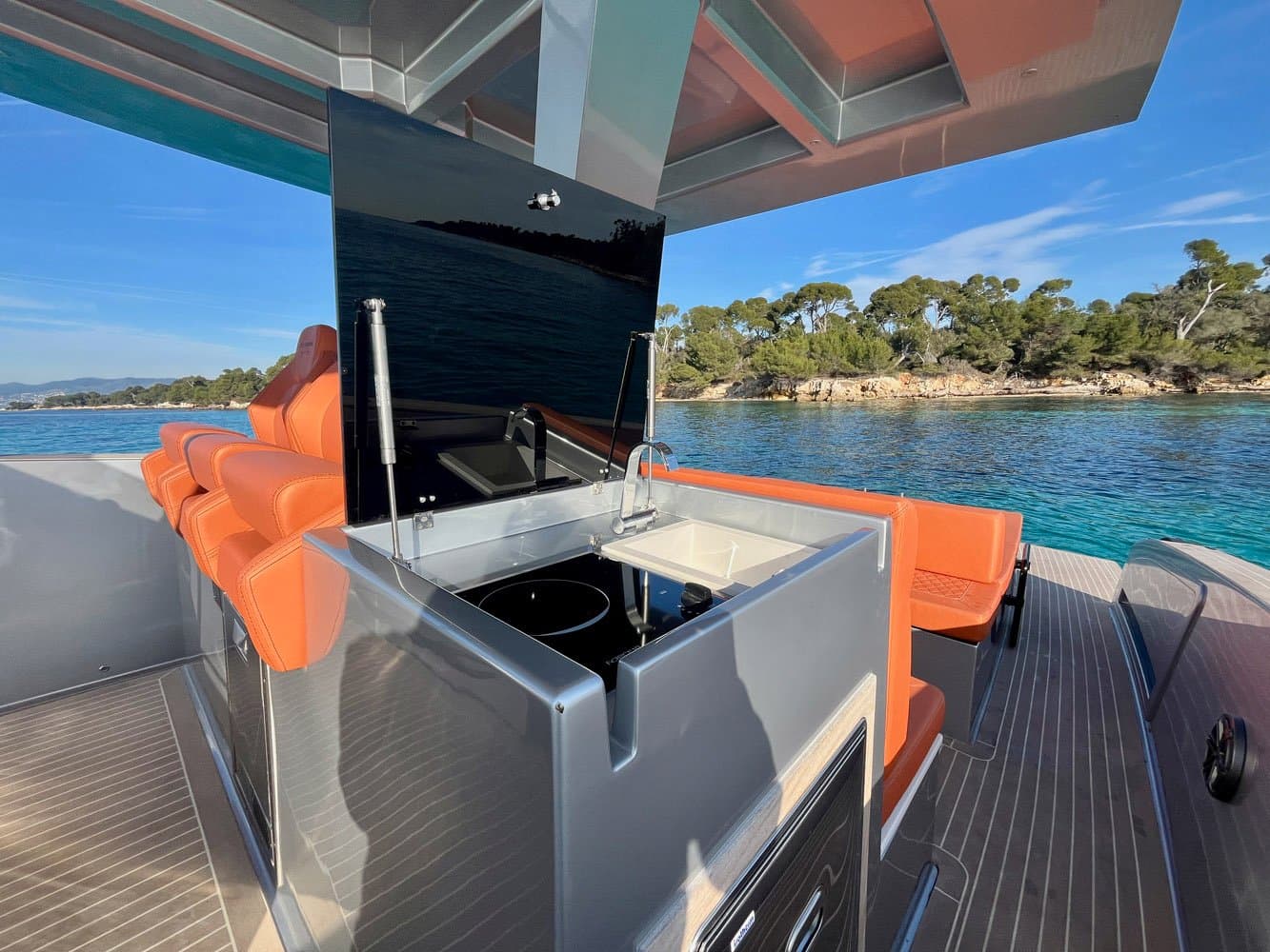 Avec 9 passagers max et 2×350 HP de puissance, le Tessoro Yachts T40 est parfait pour explorer les plages de Pampelonne, les criques du Cap Taillat, ou naviguer jusqu'à Saint-Tropez et Port Grimaud.